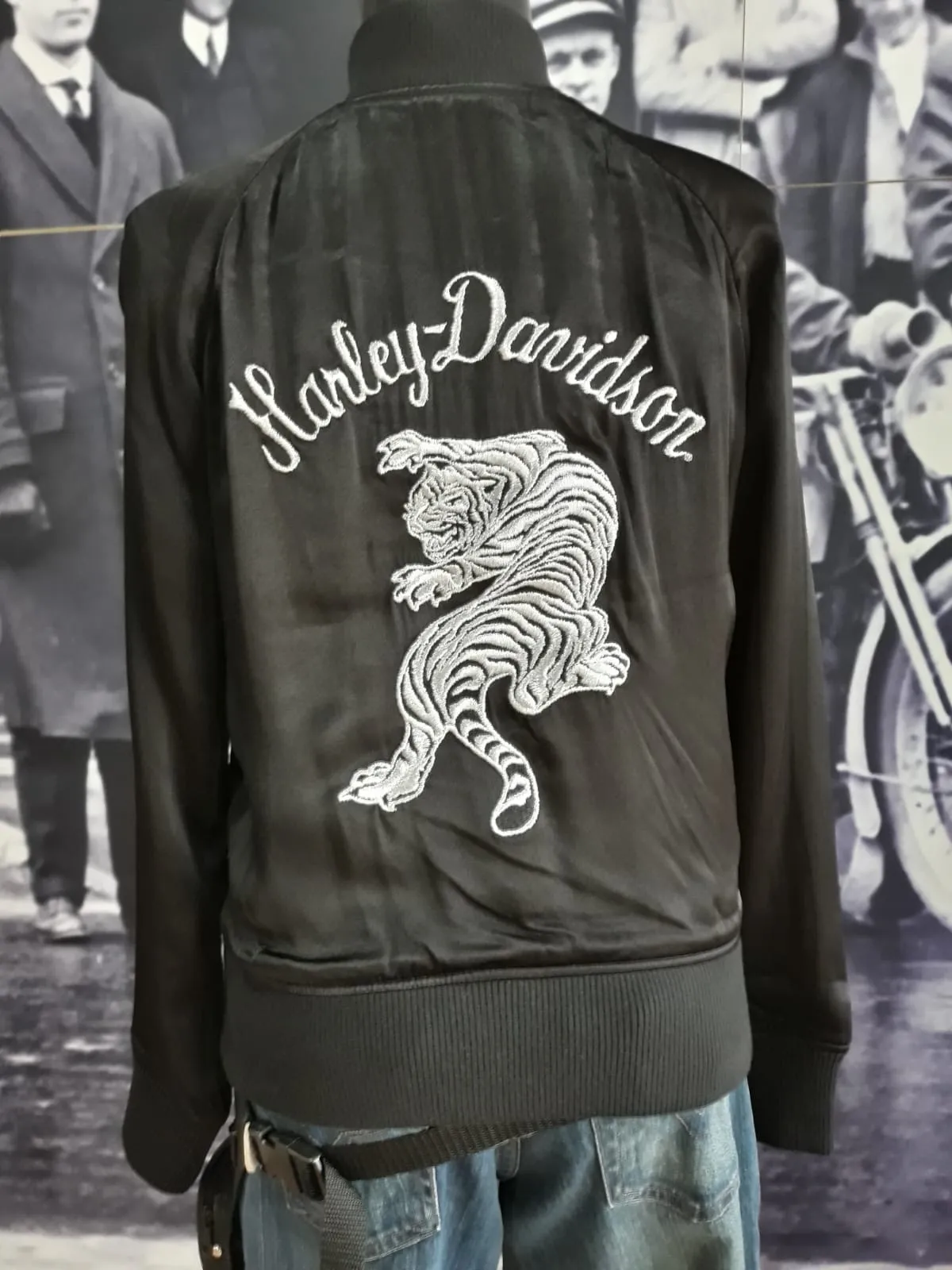 Chaqueta negra/gris, de mujer. Con bordados en pecho y espalda.