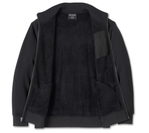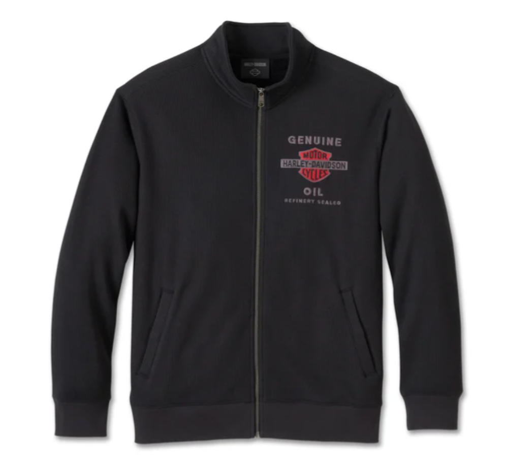 Está confeccionada con un gofre de algodón/poliéster que le da un aspecto texturizado y forrada de Sherpa para un calor acogedor. Cremallera en la parte delantera, bolsillos calientamanos con cierre a presión oculto y cuello alto. La parte trasera permanece limpia para dejar sitio al atractivo bordado de la parte delantera, que imita el diseño de nuestra lata de aceite de los años 30. Consigue la tuya antes de que se agoten las existencias.