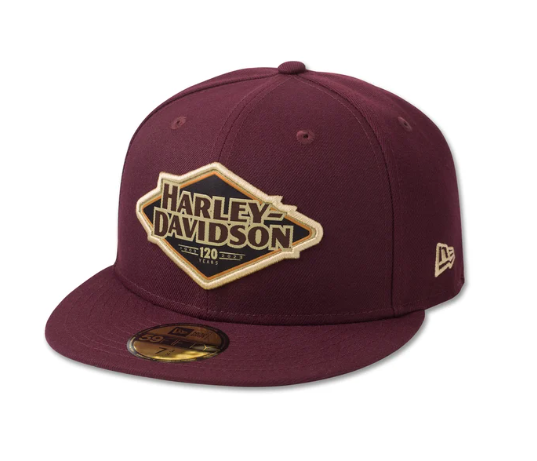 Honra nuestro legado y tu amor por la carretera con la 120th Anniversary Baseball Cap. Fabricada en algodón 100% para una comodidad duradera, esta auténtica gorra 59FIFTY de ajuste elástico tiene una visera plana y corona completa. Muestra nuestra orgullosa historia con un parche tejido personalizado del 120º aniversario de Harley-Davidson, un bordado y una cinta con la imagen de marca en el borde interior.
