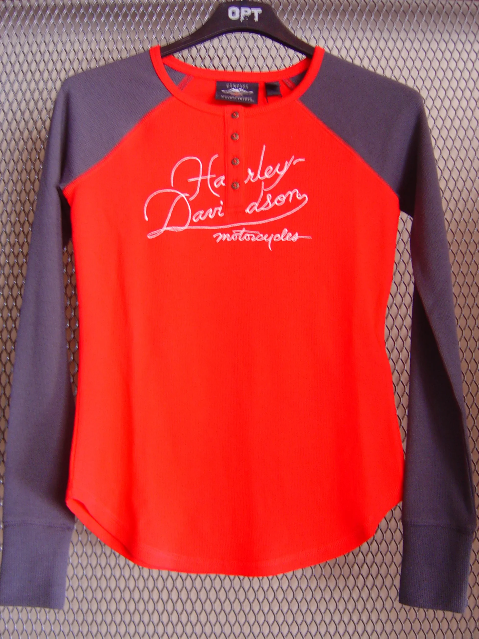 Jersey fino para mujer HENLEY-WORLD FAMOUS RED, con grabado en frontal y espalda